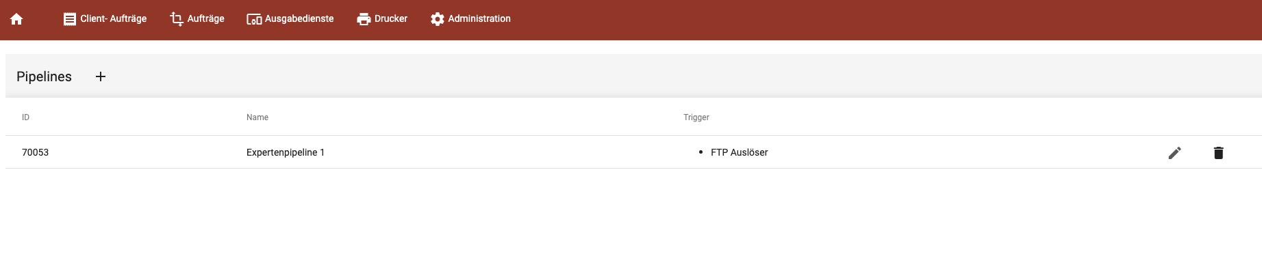 Dort kannst du bestehende Pipelines bearbeiten oder löschen und neue über das + hinzufügen.