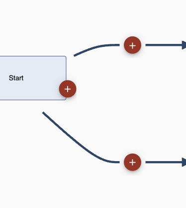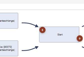 Dabei gilt, dass ein + auf einer Verbindungslinie einen neuen Schritt zwischen den beiden Schritten einfügt, den die Linie verbinden. Ein + auf einem Prozessschritt bedeutet, dass ein neuen Schritt angehängt wird. Ist bereits ein Schritt angehängt, werden die Schritte parallel ausgeführt. Somit kann ein Dokument z.B. an zwei unterschiedliche Drucker gesendet werden.