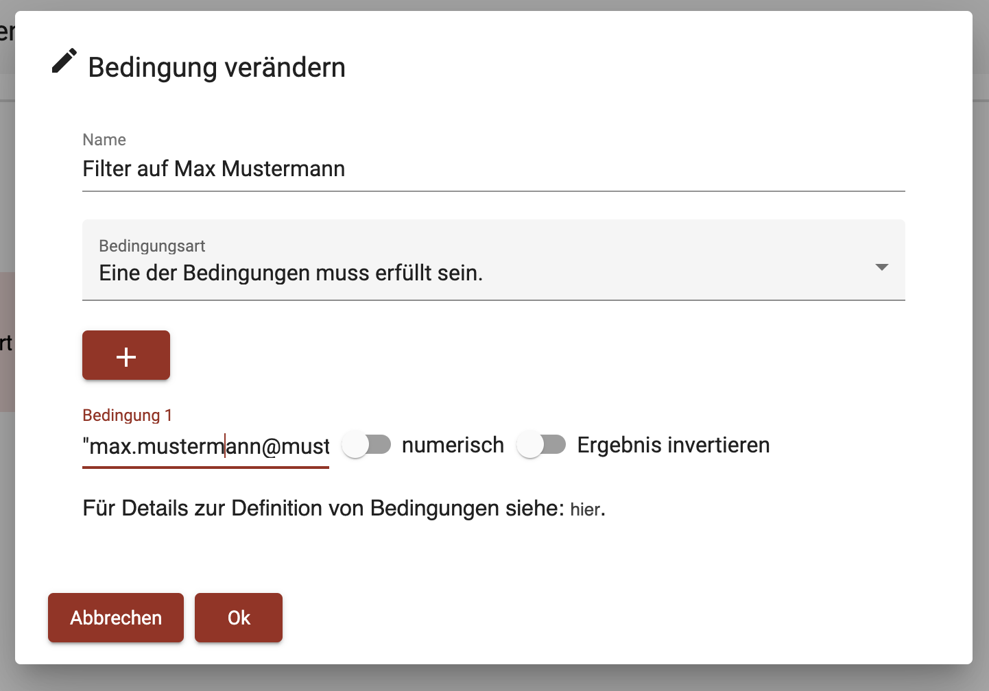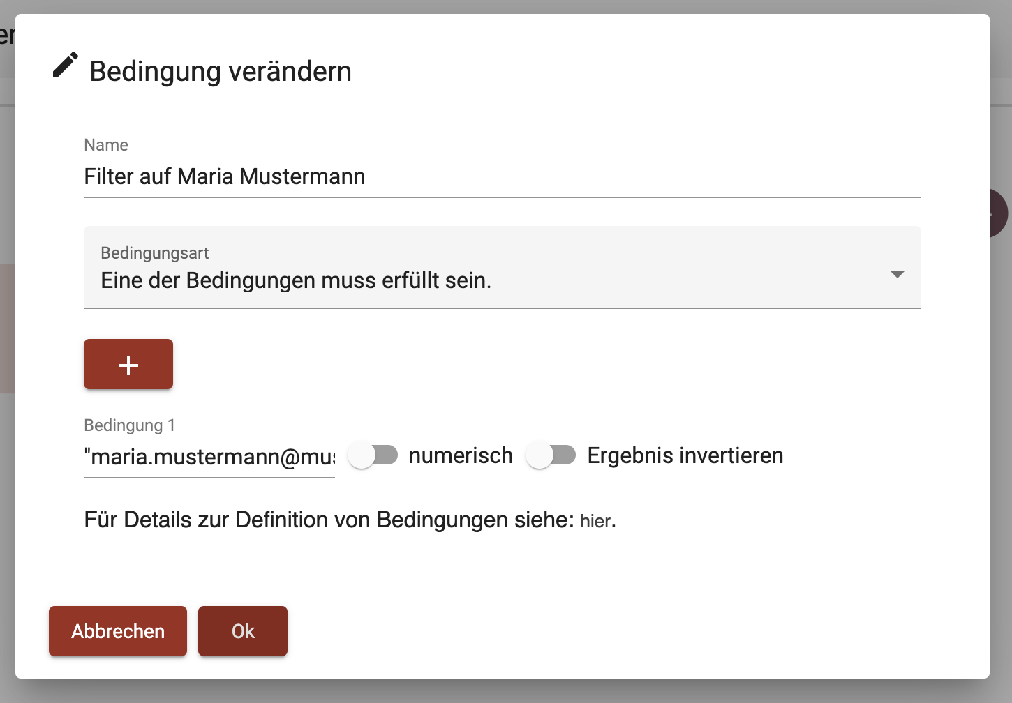 Solltest du weitere User zu einem der beiden Drucker hinzufügen wollen, kannst du einfach in der Kachel der Bedingung auf das Symbol oben links klicken um den Filter zu bearbeiten.